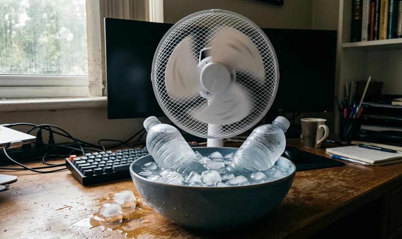Много хора са свикнали да пускат вентилатора на максимум в горещи дни с надеждата за приятна прохлада, но в помещение със затворени врати и прозорци това има обратен ефект. Лично аз съм се сблъсквал със задуха на работното си място и открих просто битово решение, което наистина освежава пространството, без да е необходимо сложно инсталиране на сплит системи.