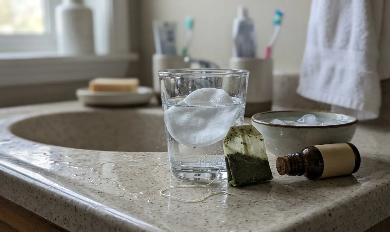 Обикновено накисвам тампон в студена отвара, добавям капка сок от алое и го притискам силно към раздразнената зона. Важно е да не търкате лигавицата, а просто да държите компреса неподвижен точно две минути. Студът причинява Капилярен спазъма билковите съставки нежно покриват повърхността.
