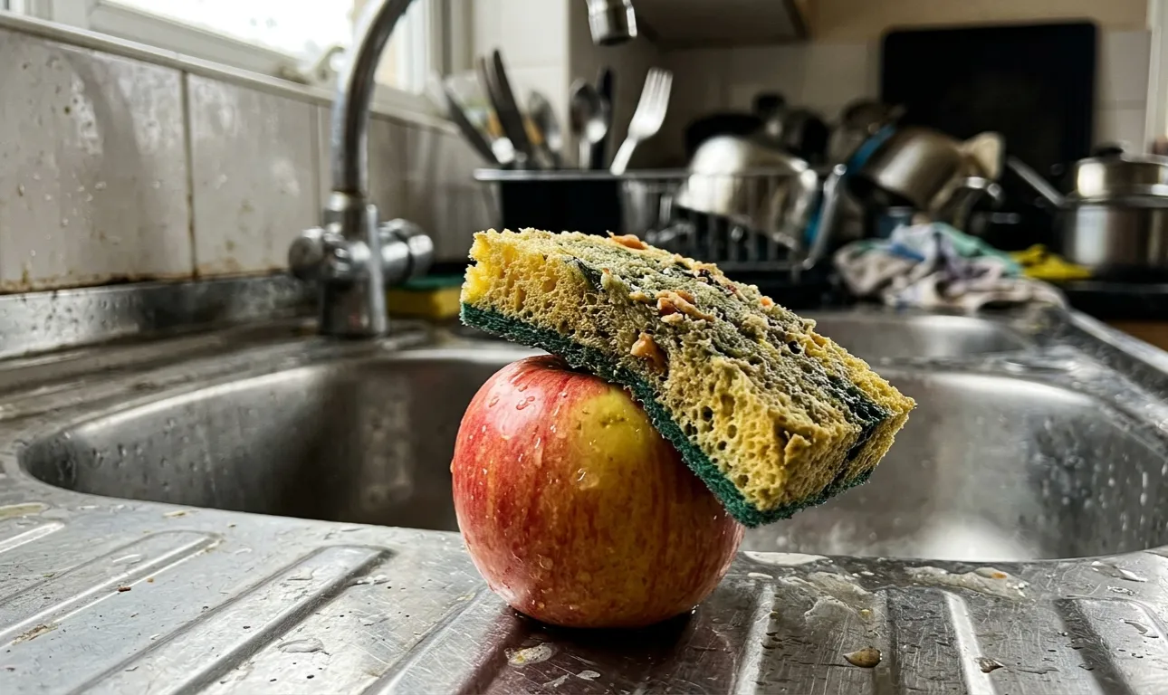 Много хора използват обикновени прибори с най-добри намерения, надявайки се лесно да изчистят восъчните натрупвания от кората на любимата си ябълка или круша. Въпреки това Пореста структура на материала действа като идеален инкубатор. В една обща кухня гъбата е в постоянен контакт с остатъци от месни сосове, разлято мляко и варива, събирайки богата и напълно неподходяща среда за пресни плодове.