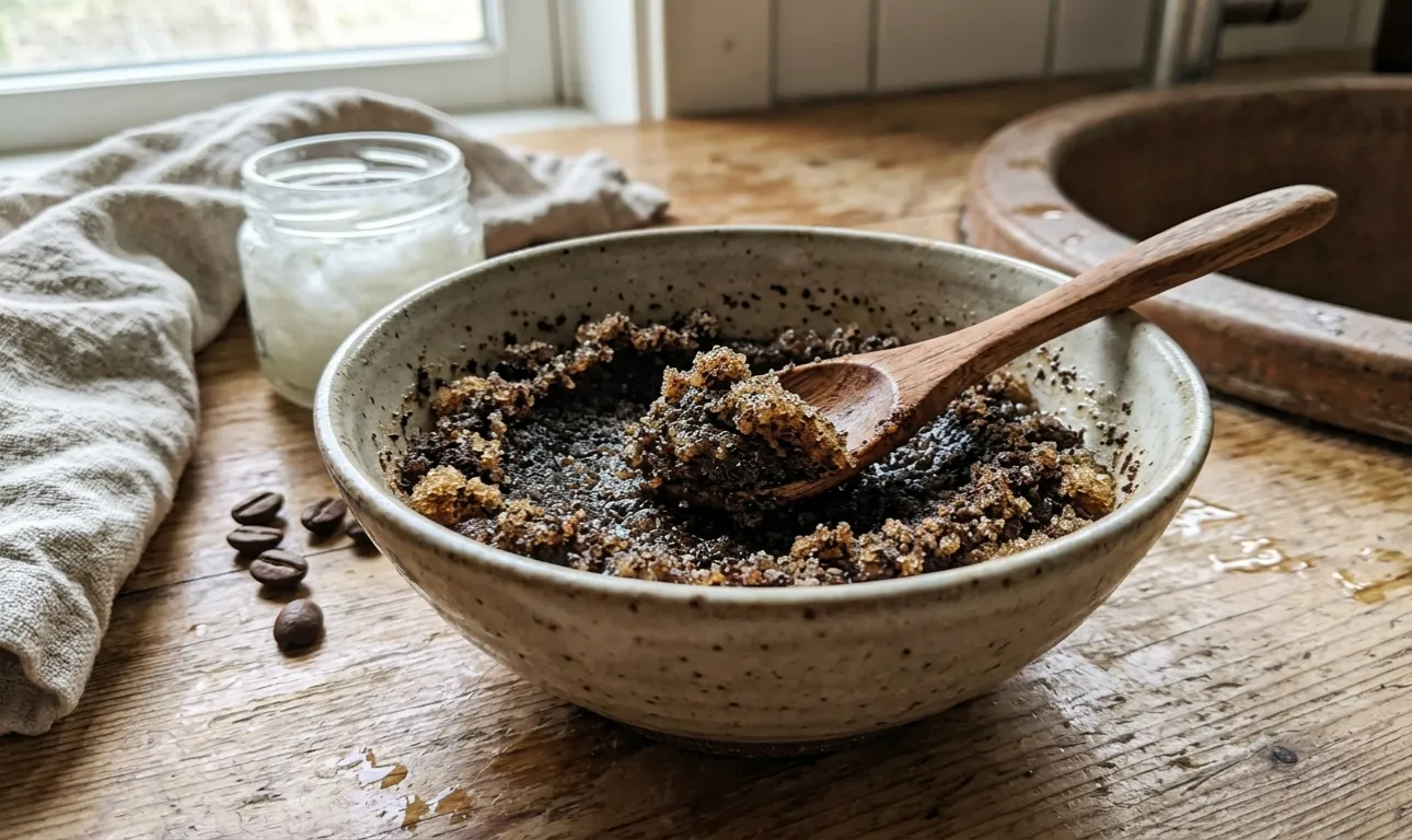 Опитах много буркани, купени от магазина, но най-ефективното решение се оказа на кухненския ми рафт. Обикновено торта с кафесмесен с базово масло, върши чудеса. Много момичета използват тази рецепта от години и нямат намерение да се откажат от нея. Тайната се крие в това, че кофеинът е отличен тонер, а фините частици нежно полират повърхността, без да оставят драскотини.